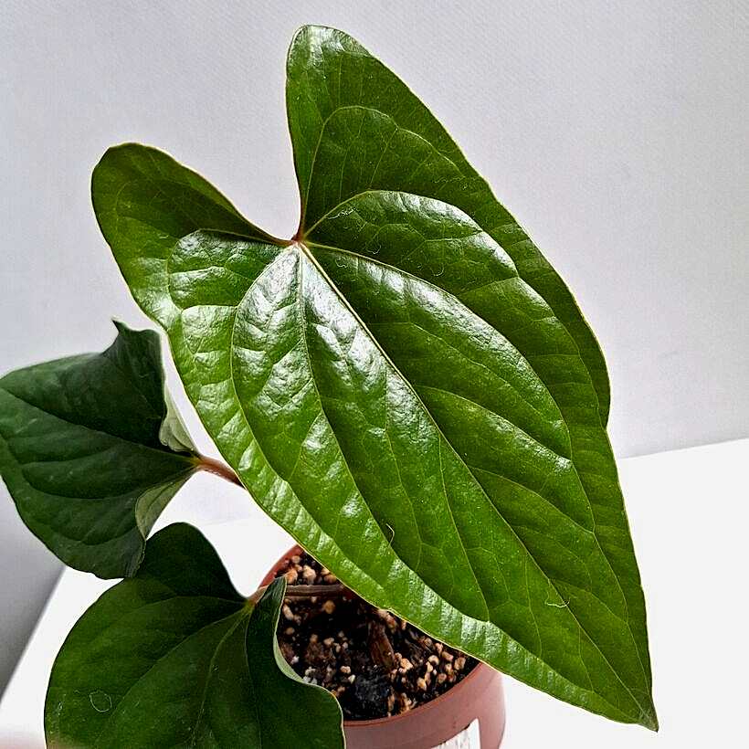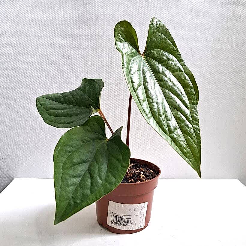 Антуриум Нигроламинум Гиги Люксурианс (Anthurium Nigrolaminum Gigi Luxurians) — гибридный сорт антуриума, сочетающий красоту и изысканность двух видов: Nigrolaminum Gigi и Luxurians. Этот коллекционный сорт славится своими вечнозелёными листьями с глубокими чёрными прожилками, придающими растению уникальный и элегантный вид. В домашних условиях антуриум достигает 60–70 см, а в оранжерее может вырасти до метра и более, что делает его идеальным для просторных помещений. Родина растения — Колумбия, где оно растёт в тропических лесах с высокой влажностью и теплом.
