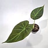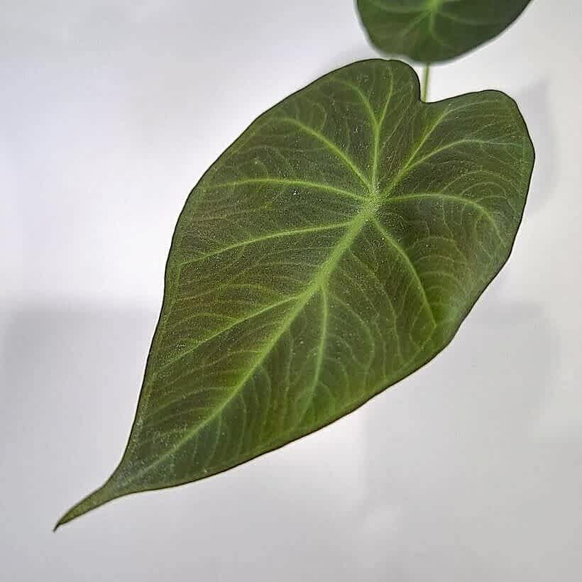 Отличительной чертой алоказии Регал Щилд являются ее сердцевидно-стреловидные листья, напоминающие рыцарский щит. Это сходство и дало название растению. Листья у алоказии крупные, кожистые и гладкие, с волнистыми краями и острым кончиком, который слегка загнут книзу. Их необычная форма и насыщенный цвет делают их настоящим украшением любого интерьера.