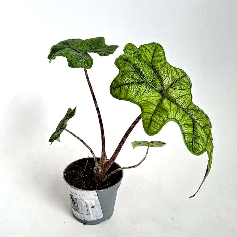 Алоказия Жаклин (Alocasia Jacqueline) — это привлекательный вид алоказии, известный своим экзотическим видом и декоративными листьями. Листья алоказии Жаклин имеют характерную сердцевидную форму с заостренными кончиками. Они относительно крупные, с длиной листовых пластин до 30 см и шириной до 20 см. Верхняя сторона листьев окрашена в глубокий темно-зеленый цвет с заметными светлыми прожилками. Алоказия Жаклин может вырастать до 1 м в высоту, хотя обычно ее размеры немного меньше.