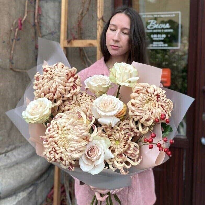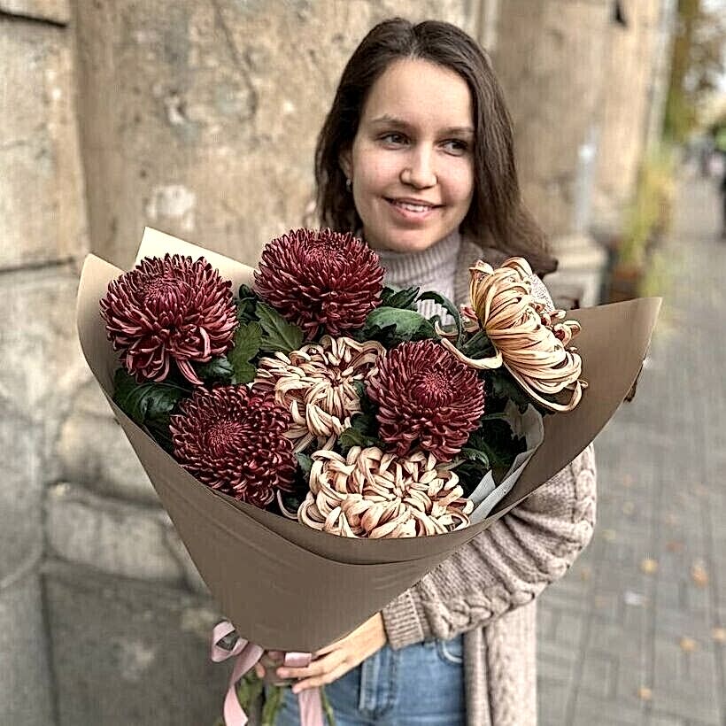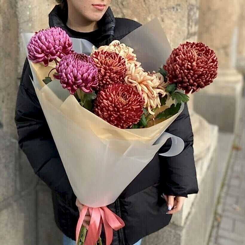 Эти великолепные цветы станут идеальным подарком на любой праздник, украсят ваш дом или офис, добавят ярких красок в серые будни. Наши хризантемы отличаются высоким качеством и разнообразием оттенков, от нежных пастельных до насыщенных ярких.